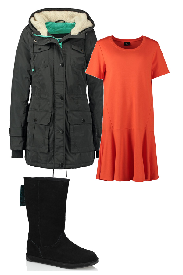 - wersja podrasowana łatwo powstaje, gdy dodasz elegancki szal, buty na obcasach lub „wyrafinowany” dodatek, jak np. kapelusz
