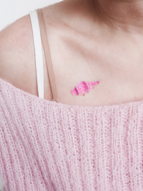 Nie samą pracą człowiek żyje, choć prawie. ;) Po rodzinnej imprezie u mojego brata (państwa-miasta 4ever!) każdy wrócił z brokatowym tatuażem. Jak się czterolatka uprze, to nie ma zmiłuj. :) To dziwne coś na zdjęciu to prezent od mojej mamy – pumeks z glinki marokańskiej. Świetny! I złapana na spacerze śnieguliczka. Jej kolor był tak intensywny i tak wyróżniający się wśród śniegowego błotka, że aż wyciągnęłam telefon.