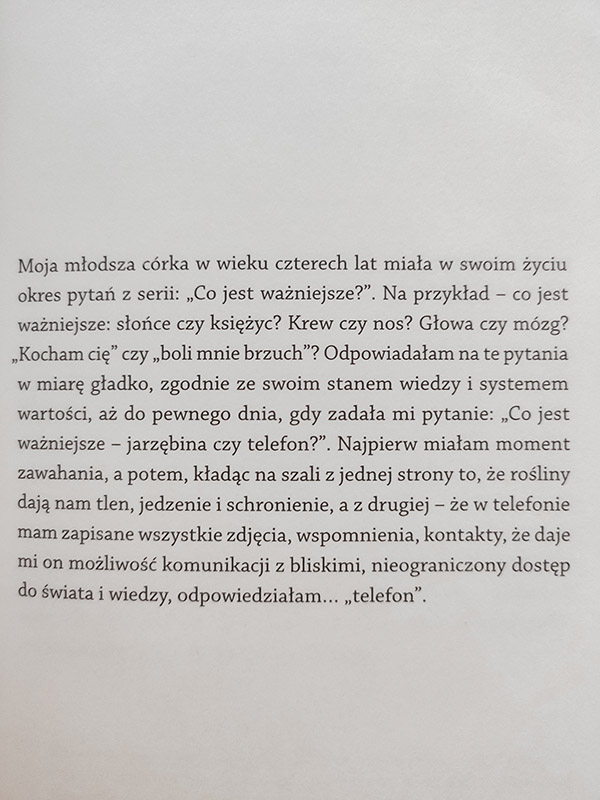Obie czytam powolutku, na raty, bo potrzebuję ułożyć sobie i przyswoić to, co czytam. I obie są świetne! Chylę czoła przed kwerendą, którą zrobiła do swojej książki Natalia Hatalska, i cieszę się, że powstały tekst, mimo wypakowania faktami, badaniami i danymi, nadal ma w sobie humanistycznego, i nawet nieco filozoficznego, ducha. Obawiam się tylko, że mam w sobie trochę mniej optymizmu niż autorka, gdy czytam o tym, w którą stronę idzie ludzkość w parze z technologią. Mam wrażenie, że podobnie jak cisza coraz częściej jest luksusem we współczesnym świecie, tak za chwilę bycie offline będzie czymś, co dostępne jest garstce najbardziej zdeterminowanych. Mam ambicje być w tym gronie. Uwielbiam możliwości, które daje technologia (hello, prowadzę blog!), ale i czuję dużo narastających zagrożeń, w świetle których kontrola (np. czasu spędzanego online) staje się kolejną iluzją.