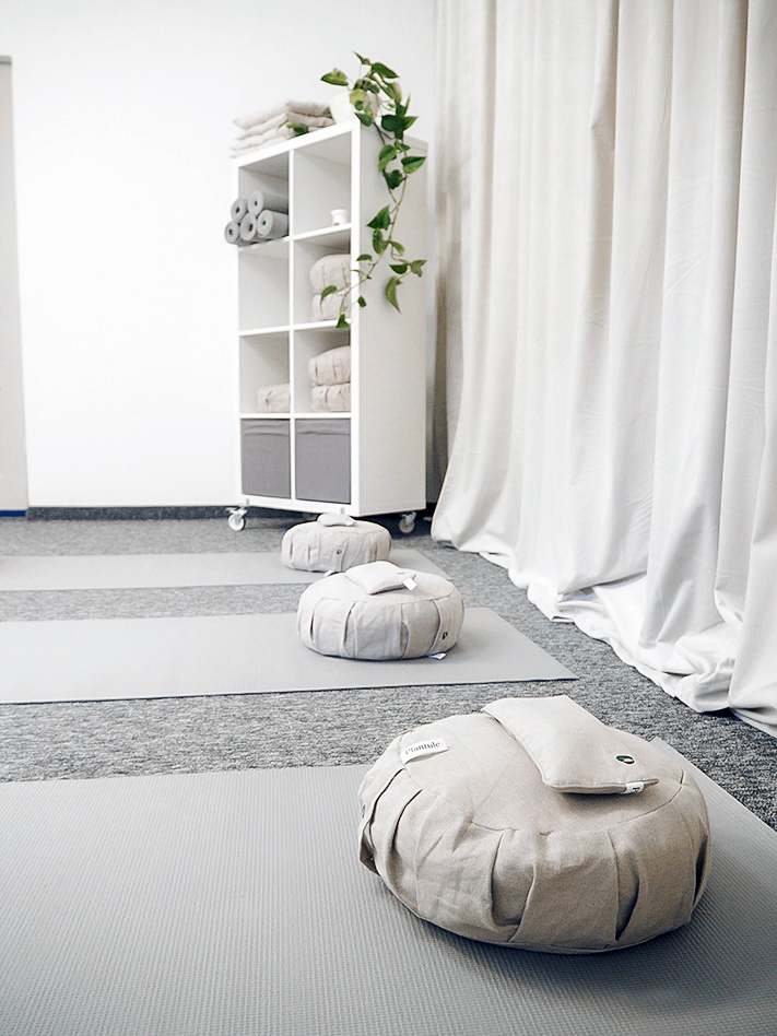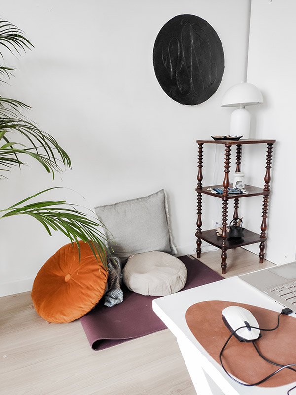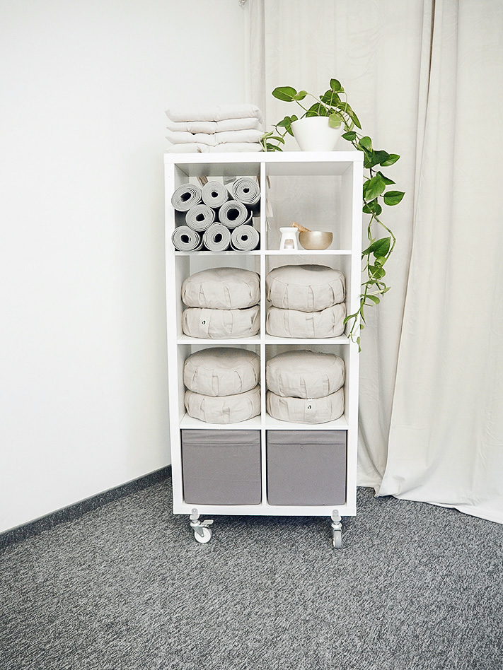 Mój remontowy zapał przeniósł się do biura. Jeszcze w listopadzie odświeżyłam salę, która jest teraz też moją salą medytacyjną, w której prowadzę stacjonarne kursy MBSR. W styczniu nareszcie zabrałam się do zrobienia zdjęć. Bardzo podoba mi się efekt. Jest prosto, kojąco i delikatnie. Regał, który widzicie, stał wcześniej w moim mieszkaniu. Olejek Medytacja od Klaudyny Hebdy to ostatnio mój ulubiony zapach. Poduszki do medytacji to Plantule, naturalnie.