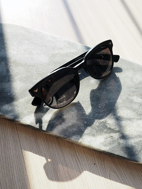 Dobre okulary przeciwsłoneczne to dla mnie coś najpotrzebniejszego. Te akurat są marki Police, noszę je chyba już trzeci rok z rzędu. Niedługo dołączą do nich zwykłe okulary korekcyjne, których właśnie szukam, bo po ostatniej wizycie okazało się, że powinnam je zakładać do pracy przy komputerze i do czytania. W mojej rodzinie wszyscy mają dobry wzrok, dlatego moja mama na wieść, że kupuję okulary, zapytała: „już?” ;) No cóż, czterdziestka niedługo, a i lata pracy przy komputerze robią swoje.