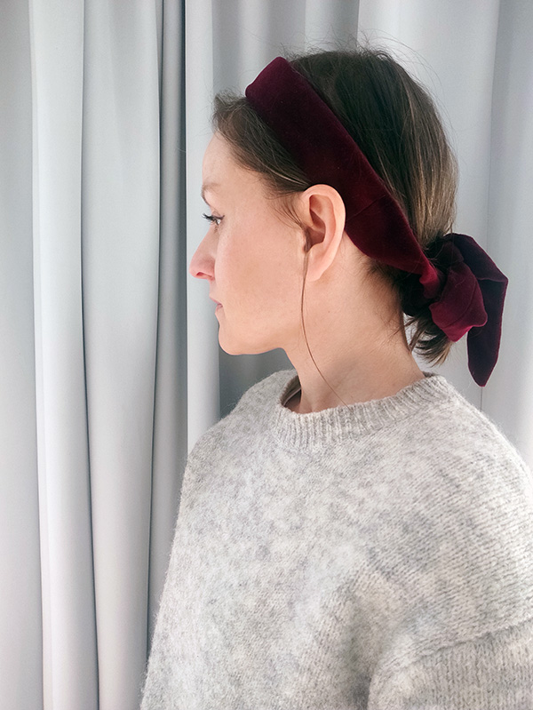 Aksamitna opaska Mavka to mój eksperyment. Dzięki dziewczynom z Mavka mogę popróbować, jak mi się nosi taki, ekstrawagancki w moim przekonaniu, dodatek. Mam ją już od kilku miesięcy i wrażenia trochę mieszane. Po pierwsze i bezapelacyjnie, opaska jest świetnie wykonana, w bardzo przemyślany sposób. Kolor wina pięknie wpasowuje się w moje, dość stonowane kolorystycznie, rzeczy. Kolor plus faktura aksamitu fajnie podbijają „zwyczajność” codziennych zestawień. Minusem jest jednak coś, czego się nie spodziewałam i o czym nie mogłam wiedzieć. Nawet godzina noszenia opaski powoduje u mnie ból głowy. :( Nie wiem, czy to dlatego, że jestem po prostu nieprzyzwyczajona, bo opaska jest w dobrym rozmiarze, nic mnie nie uwiera i nie uciska. Chyba po prostu tak już mam.