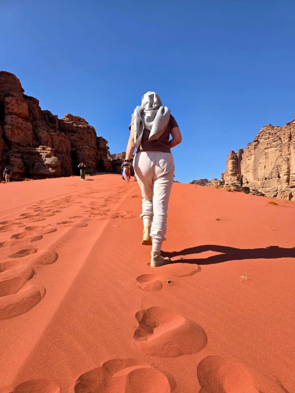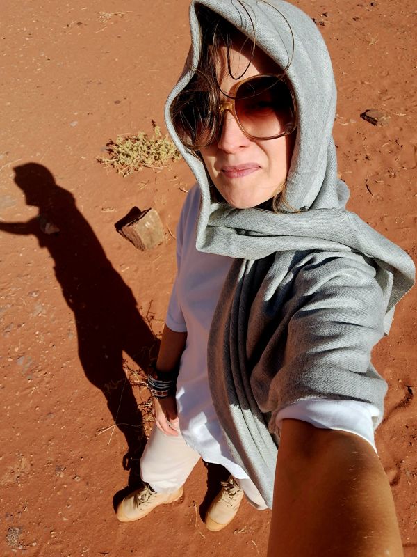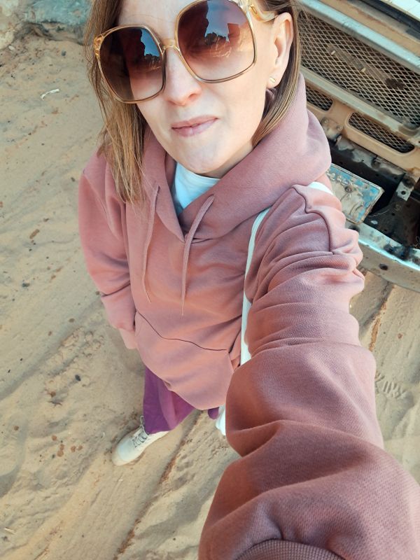 Wersja z bluzą, rano na pustyni jest chłodno.