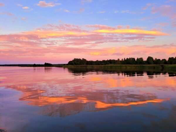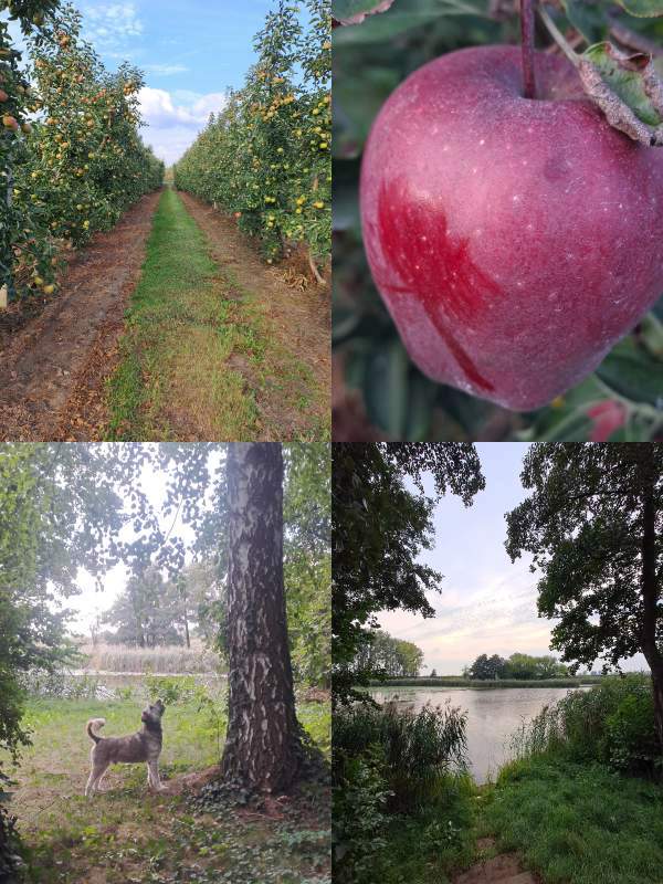 Przestrzeń, woda, jabłonie, wiatr, bliscy ludzie.