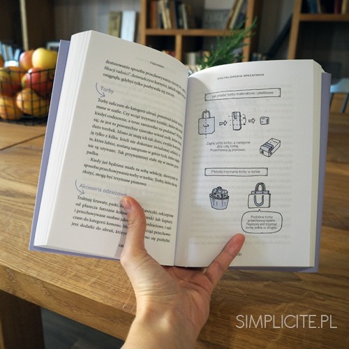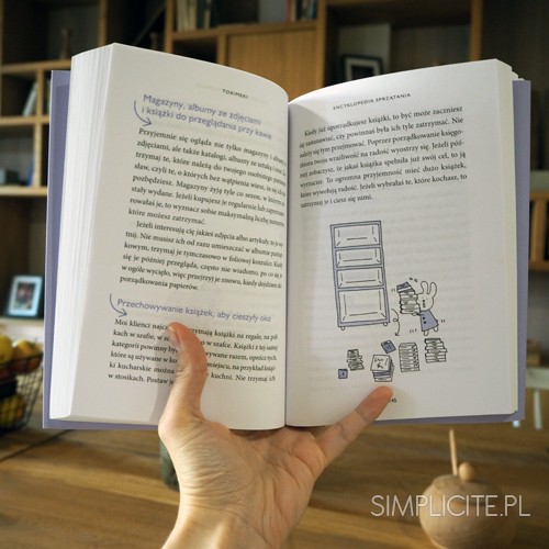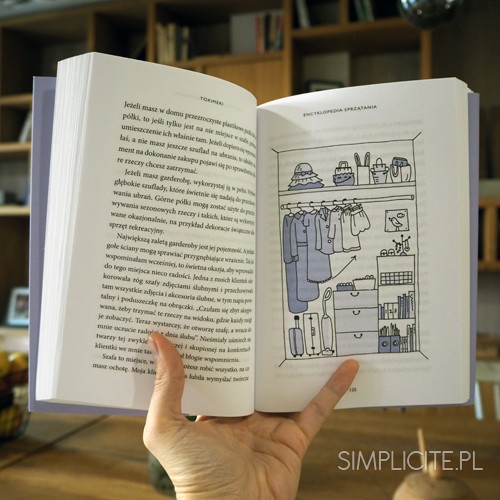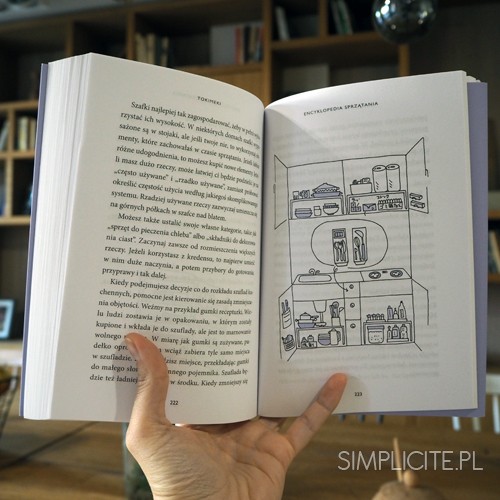 Miłym dla oka akcentem są ilustracje. Te najbardziej praktyczne pokazują instrukcję składania ubrań. Dla mnie już nieprzydatne, bo od czasu pierwszej książki faktycznie składam tak skarpetki!
