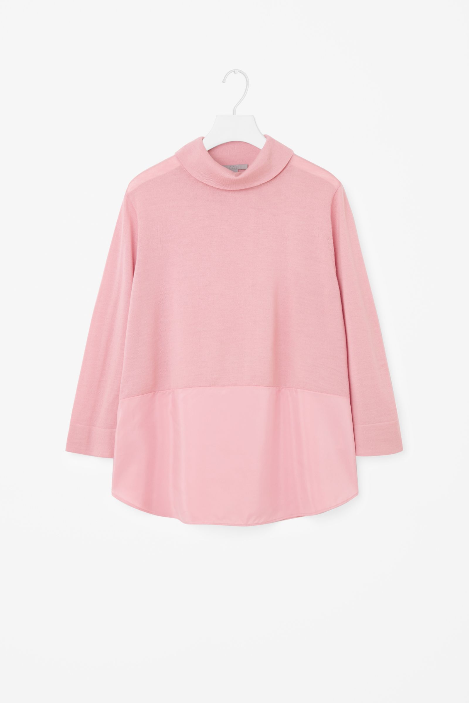 Różowy sweter COS (wełna merino + jedwab) – ok. 275 zł