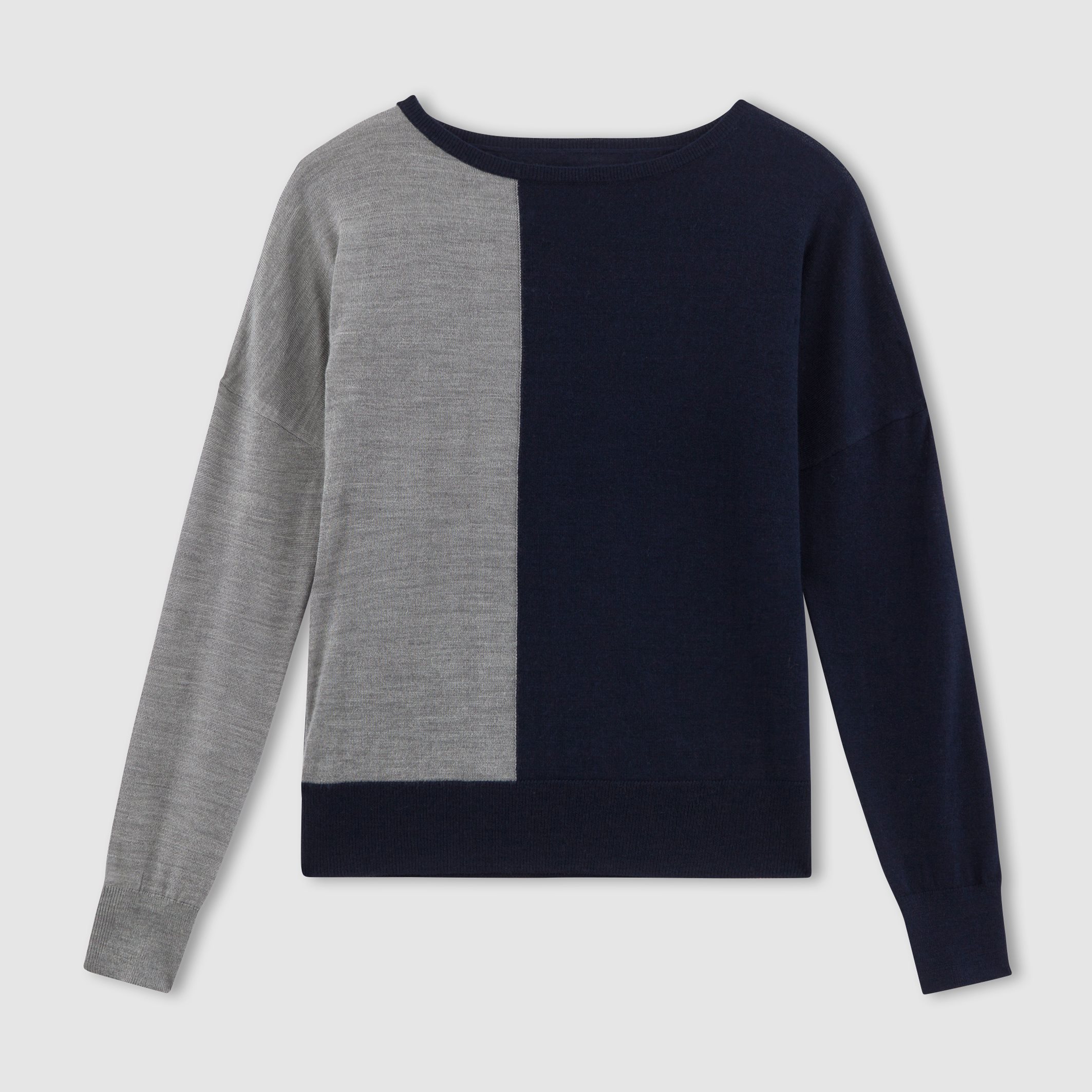 Granatowo-szary sweter Atelier R (100% wełna merino) – 314,96 zł (minus 20% rabatu)
