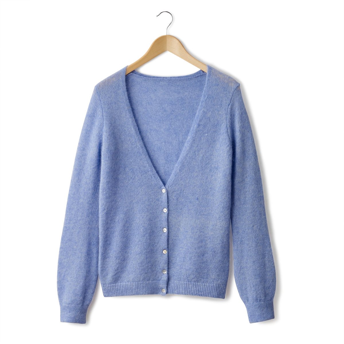 Błękitny rozpinany kardigan R essentiel (wełna, moher, poliamid i elastan) – 138,56 zł