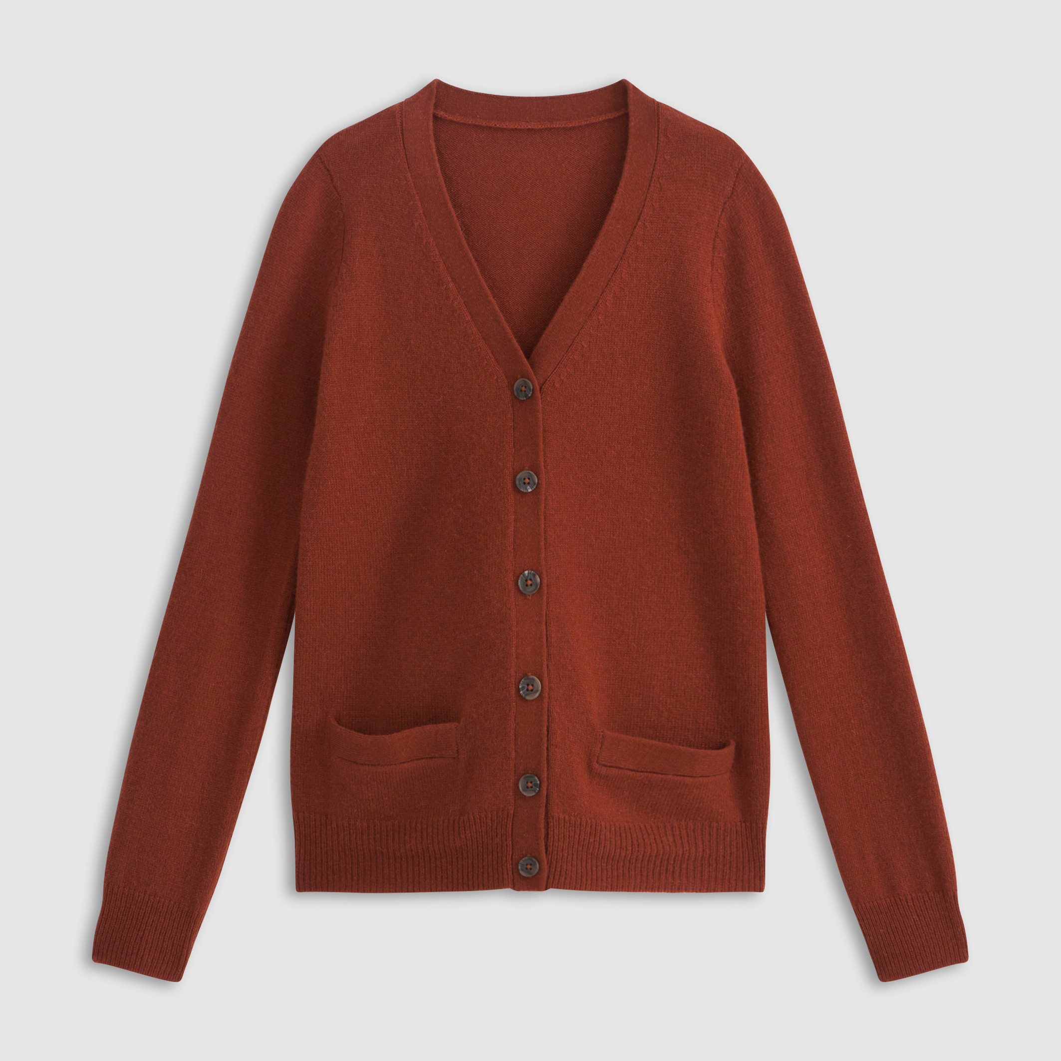 Ceglasty kardigan R essentiel (50% wełny jagnięcej z domieszką z domieszką poliamidu i wiskozy) – 209,96 zł (minus 20% rabat)