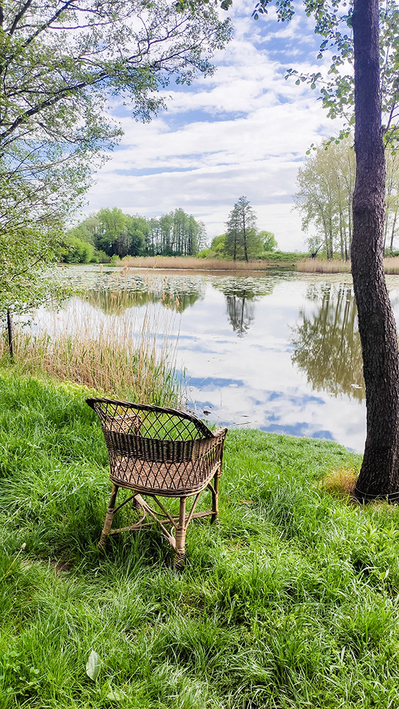 A Przystań? Wszystko jest tu takie, jak powinno być. To niewielka działka nad jeziorem, godzinę drogi od Warszawy, z dostępem do linii brzegowej. Nie pytajcie mnie proszę o dokładną lokalizację – nie podaję jej ze względów bezpieczeństwa. Mały domek, niewielka działka. Trochę nad jeziorem, a z tyłu jak w lesie. Blisko sady jabłoniowe (mogę żyć na samych jabłkach ?), szpaler ukochanych brzóz, wielki jaśmin i magnolia.