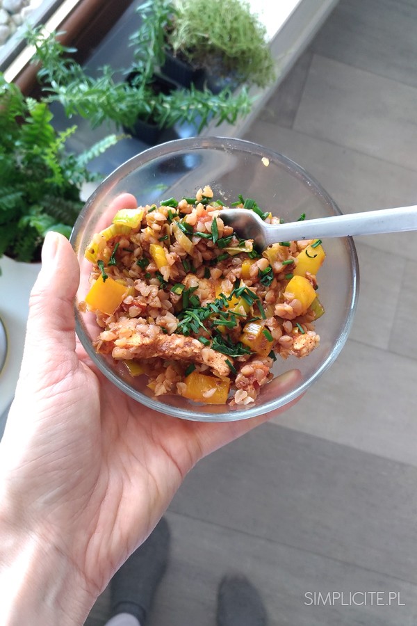 MM trzyma restrykcyjną dietę, ja nie muszę aż tak uważać i zdarza mi się zjeść coś spoza listy, ale staram się nie trzymać w domu rzeczy, których on nie może jeść. I szczerze mówiąc, zupełnie mi to nie przeszkadza! Nie ciągnie mnie ani do słodyczy, ani do mięsa (wręcz przeciwnie), ani do bułek. Odkryłam nowe smaki jak np. pieczony kalafior – pycha! Muszę tylko dbać o to, żeby nie być głodną. Dlatego szukam dań, które będą się wpisywały w naszą dietę, ale będą również szybkie i proste w przygotowaniu. Chociaż to, co jem jest teraz dużo większym priorytetem dla mnie, niż kiedyś, to jednak nie mam ochoty stać w kuchni cały dzień.