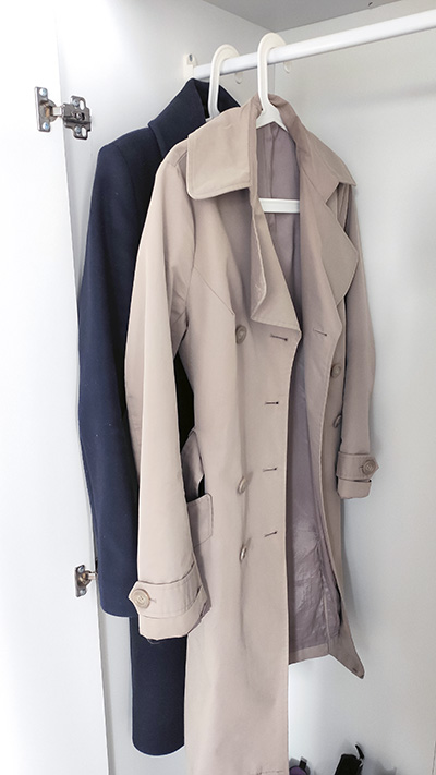 - 2 płaszcze (wiosenny trencz i ciepły wełniany)