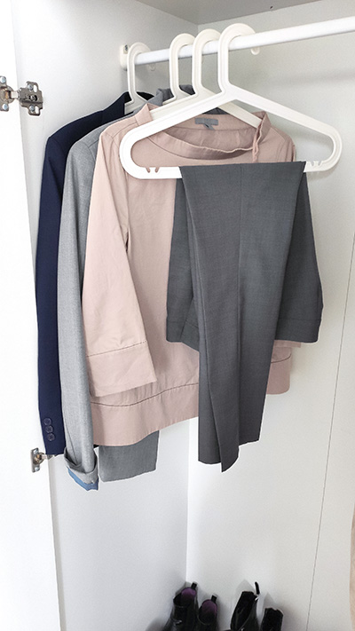 Naturalnie, poszczególne ubrania spokojnie przenoszę z jednej kapsuły do drugiej. Przykładowo, sporo ubrań sportowych noszę również po domu, a niektóre ubrania codzienne do pracy mogę przemycić również do wersji bardziej oficjalnych, ale oczywistym jest, że nie zabiorę wełnianej marynarki na trekingową wyprawę. Uświadomienie sobie, że nasza szafa ma w sobie tak naprawdę kilka innych ogromnie pomaga w każdym etapie budowania kapsułowej szafy, począwszy od wstępnych porządków, a na ewentualnych zakupach skończywszy.