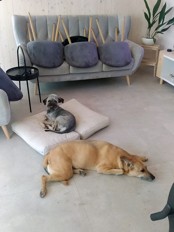Pojawił się 3 miesiące temu. Znienacka. Któregoś dnia MM zauważył obcego psa na podwórku przy domu. Wtedy wokół działki stało robocze, prowizoryczne ogrodzenie. Nelę trzymało na terenie, ale mały, chudy piesek prześlizgnął się przez oczko siatki bez większego problemu. Przywitał się z Nelą i uciekł. Na początku myślałam, że to czyjś pies. Wioskowy, takie tutaj często chodzą własnymi ścieżkami.