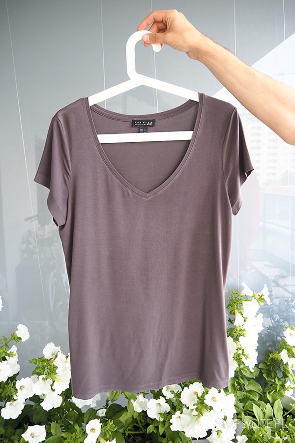 Ta koszulka gości w mojej szafie już bardzo długo. Kupiłam ją w kwietniu 2015 roku, trochę pod wpływem impulsu. Podobnie, jak reszta koszulek, eksploatowana bardzo intensywnie, choć wiosną i latem bardziej, co zrozumiałe.