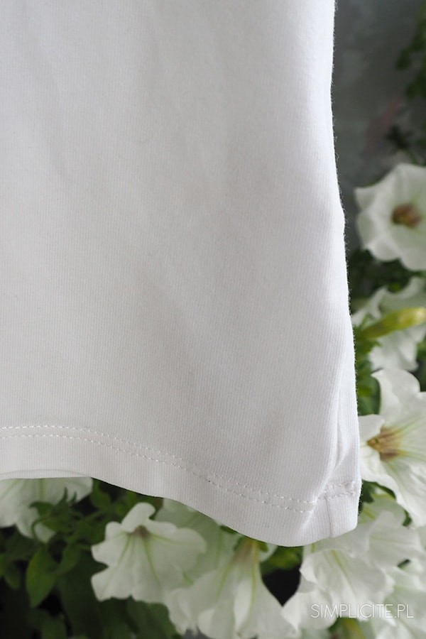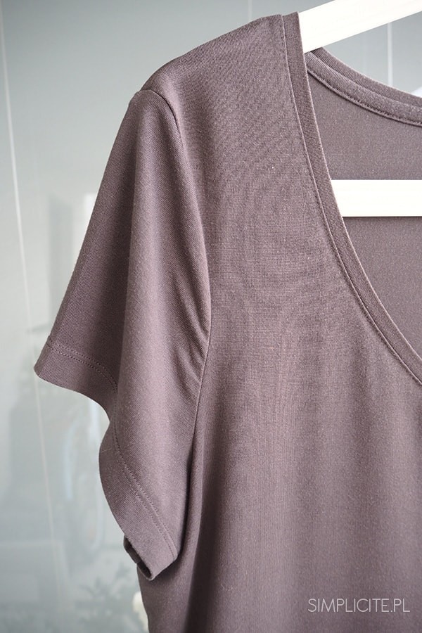 Wykończenie: niezłe, trochę lepsze, niż koszulka z H&M. Dodaję punkcik za moje ulubione wykończenie dekoltu bardzo blisko szyi. Łącznie 4,5 punktu.