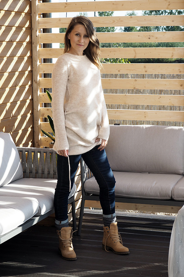 Uwielbiam ubrania, które są ponadczasowe, ale mają w sobie coś wyjątkowego – detal, krój, wykończenie. Gdy do tego dodamy wysoką jakość tkanin, mamy przepis na naprawdę dobrą kolekcję. Z wszystkich zestawień zaskakująco najlepiej czułam się w sukience i traperach, ale na zdjęciach zestawy z kozakami i swetrem na jedno ramię wyglądają całkiem, całkiem. ;)