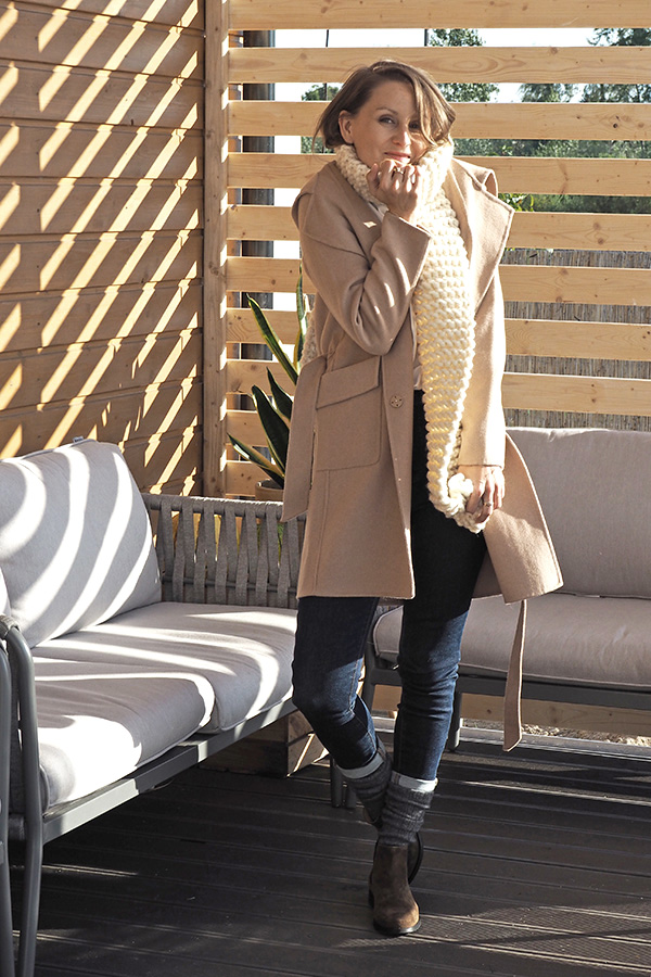 W ramach cyklu pojawiły się już intensywne czerwienie i róże, ale zaskakująco, w komentarzach dostałam prośbę o beże i szarości. :) Ależ proszę bardzo! Dzisiejszy wpis jest również wyjątkowy, ponieważ mam unikalną możliwość pokazania Wam zestawów nie swoich rzeczy nie przy użyciu zdjęć, a… na sobie.