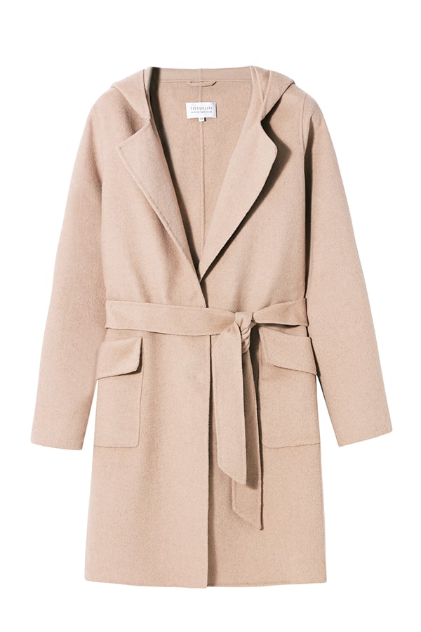 7. Płaszcz Lilasta – 50% wełna, 40% poliester, 10% inne włókna. Płaszcz ma raczej wiosenno-jesienną grubość, bez ocieplenia i wygodny kaptur.