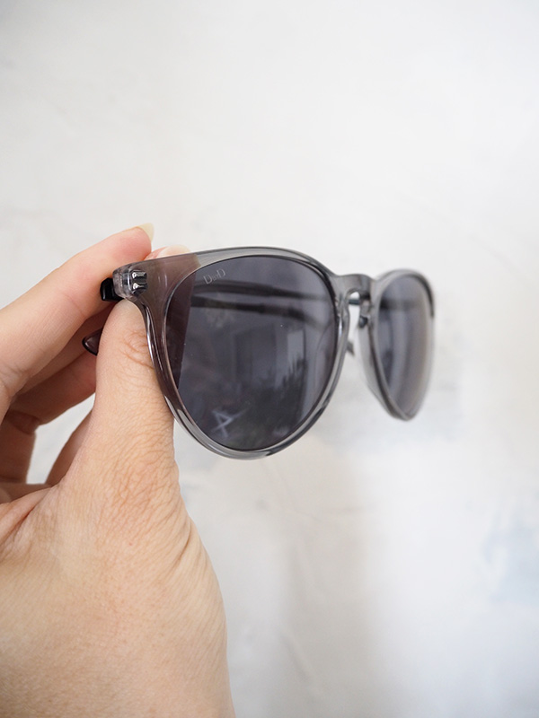 Jest to również mój drugi tekst we współpracy z markami Vision Express oraz DbyD. Testowałam dwie pary okularów przeciwsłonecznych marki DbyD i na stałe postanowiłam zostawić jedną. Oprawki są niezwykle lekkie, ale solidne, a szare szkła zapewniają mi optymalną ochronę. Przypominam, że nie są to oprawki z plastiku, ale z bioacetatu, które podlega recyklingowi jako papier.