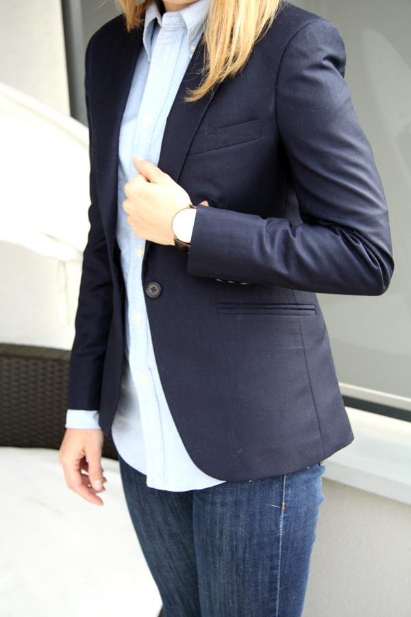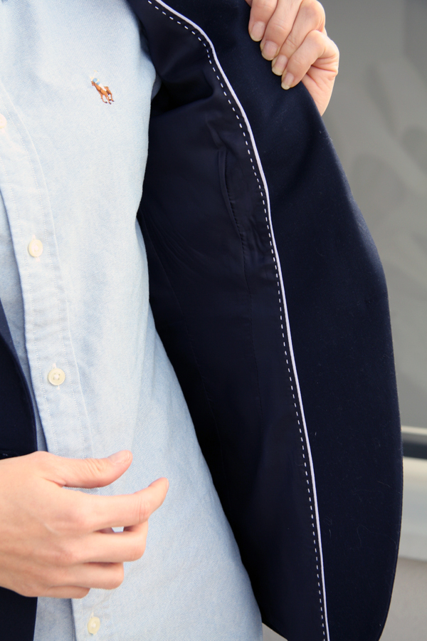 Zgodnie z zapowiedzią pokazuję nowość w mojej szafie, czyli przepiękną granatową marynarkę z wełny z domieszką kaszmiru, na jedwabnej podszewce. Marynarka została uszyta na miarę w… Tajlandii :). Pisałam już o tym, że krawieckie rzemiosło w Tajlandii, a jeszcze bardziej w Wietnamie jest wysoko cenione, postanowiłam więc przekonać się o tym na własnej skórze.