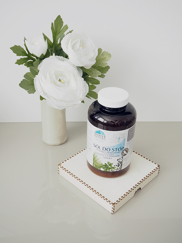 Okazjonalnie używam też soli do stóp tej samej firmy. W składzie ma również sól z Morza Martwego jako bazę, ale jest wzbogacona o olej z czarnuszki i jojoba oraz naturalne zapachy. Jednak, gdy mi się skończy, będę używać do stóp tej samej soli, co do kąpieli.