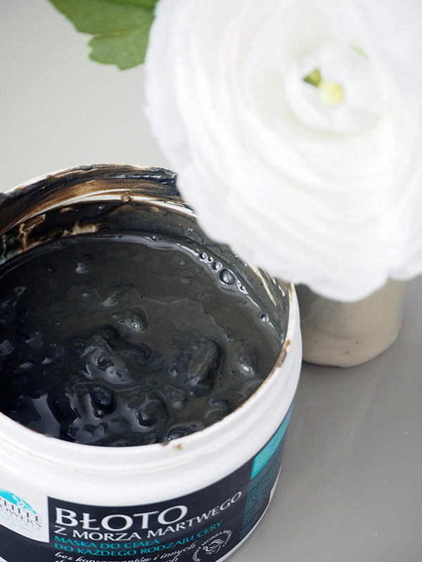 Aha, i jest to prawdziwe 100% błoto z Morza Martwego, ponownie bez żadnych dodatków, barwników czy zapachów. Ważne! Zanim nałożycie błoto na ciało, przeczytajcie proszę informacje na opakowaniu i potraktujcie je serio. Warto zrobić próbę i sprawdzić czy błoto nie podrażni Waszej skóry. Nie nakładajcie go też na skórę w miejscach, gdzie macie jakiekolwiek drobne ranki, skaleczenia czy oparzenia. Może zaboleć. Uwaga również na skórę twarzy. Nie ma żadnych przeciwskazań, ale koniecznie omijajcie okolice oczu i zróbcie wcześniejszy test. Warto też rozcieńczyć błoto przed nałożeniem na twarz. Moja skóra jest pod tym względem dość pancerna, regularnie używam maseczek z glinki, ale błoto z policzków musiałam zmyć dość szybko, żeby nie doprowadzić do podrażnienia. Za to jaką miałam cudownie napiętą i gładką skórę! ?