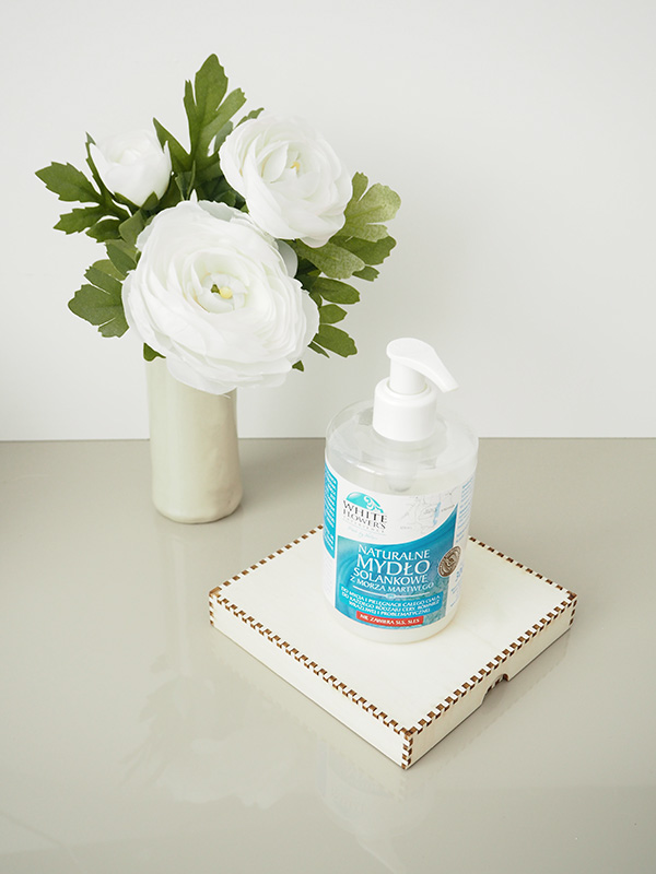 Dzięki współpracy z marką White Flower’s mogłam przetestować też ich mydła – Mydło Solankowe w płynie i Mydło Błotno-Solne (oczywiście na bazie błota i soli z Morza Martwego). Nie wejdą one do mojej regularnej pielęgnacji ciała z uwagi na prosty fakt, że zachwyciłam się peelingiem myjącym i savon noir, ale używam ich do mycia rąk i sprawdzają się doskonale. Warto bowiem zauważyć, że w sklepach wcale nie jest tak łatwo znaleźć mydło do rąk w płynie o dobrym składzie i przyjemnej konsystencji, a MM uparcie odmawia używania mydła w kostce i ja to rozumiem – każdy ma swoje przyzwyczajenia i potrzeby (jak ja z antyperspirantem).