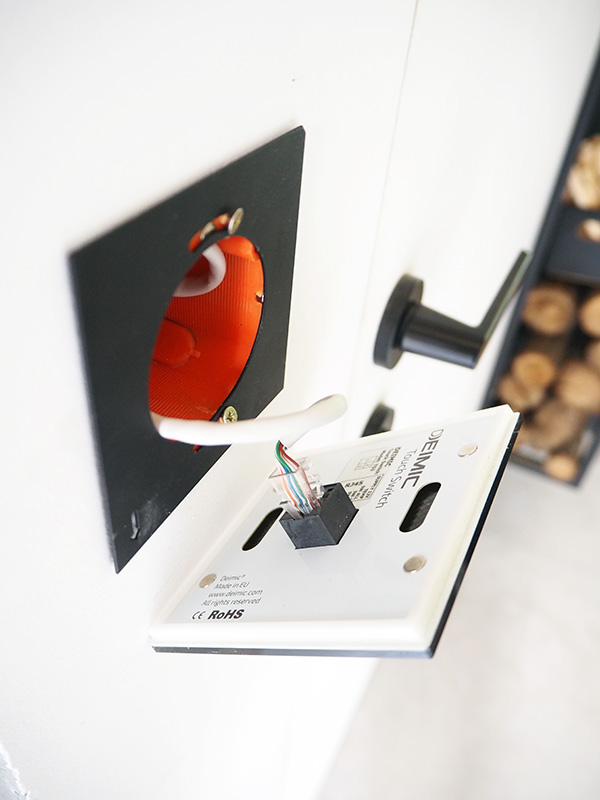 Z serca systemu do wszystkich elementów sterowanych muszą iść kable (jest to system przewodowy, na takim nam zależało – modele bezprzewodowe bywają bardzo zawodne). Planowanie jest tu kluczowe, a instalacja takiego systemu jak nasz w domu, który już istnieje, jest raczej niemożliwa. Dzieje się tak dlatego, że cały dom jest okablowany kablem RJ45 (potocznie zwany ErJotką). Z tego względu do wszystkich włączników nie idą kable prądowe (jak to zwykle bywa), tylko te bardziej internetowe. Warto natomiast, tu porada, nie rezygnować z tych prądowych – zawsze dobrze mieć backup. Tak, na wszelki wypadek. Wprawdzie jest techniczna możliwość „przerobienia” potem takiej instalacji, ale to skomplikowane.