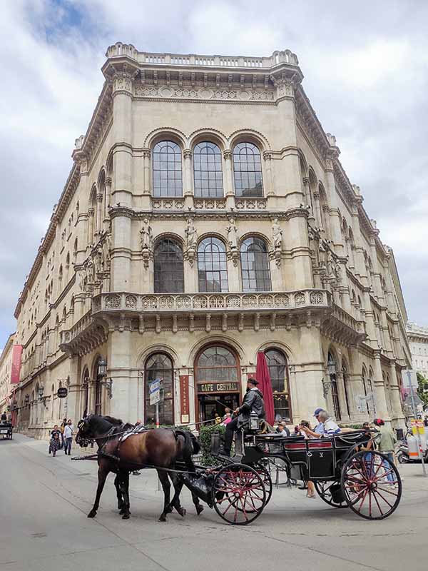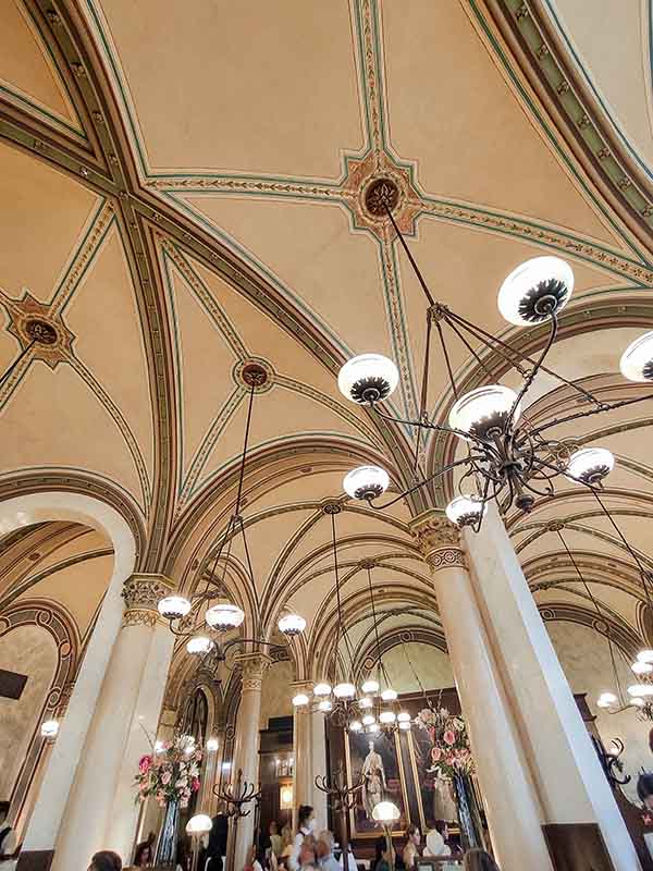 Cafe Central to kultowa kawiarnia. Chociaż musiałyśmy odstać swoje w kolejce, to lubię odwiedzić takie miejsce i wyrobić sobie swoją opinię. Monumentalne wnętrze i fatalna kawa. Serio, śniadaniowa w hotelu była lepsza. :)