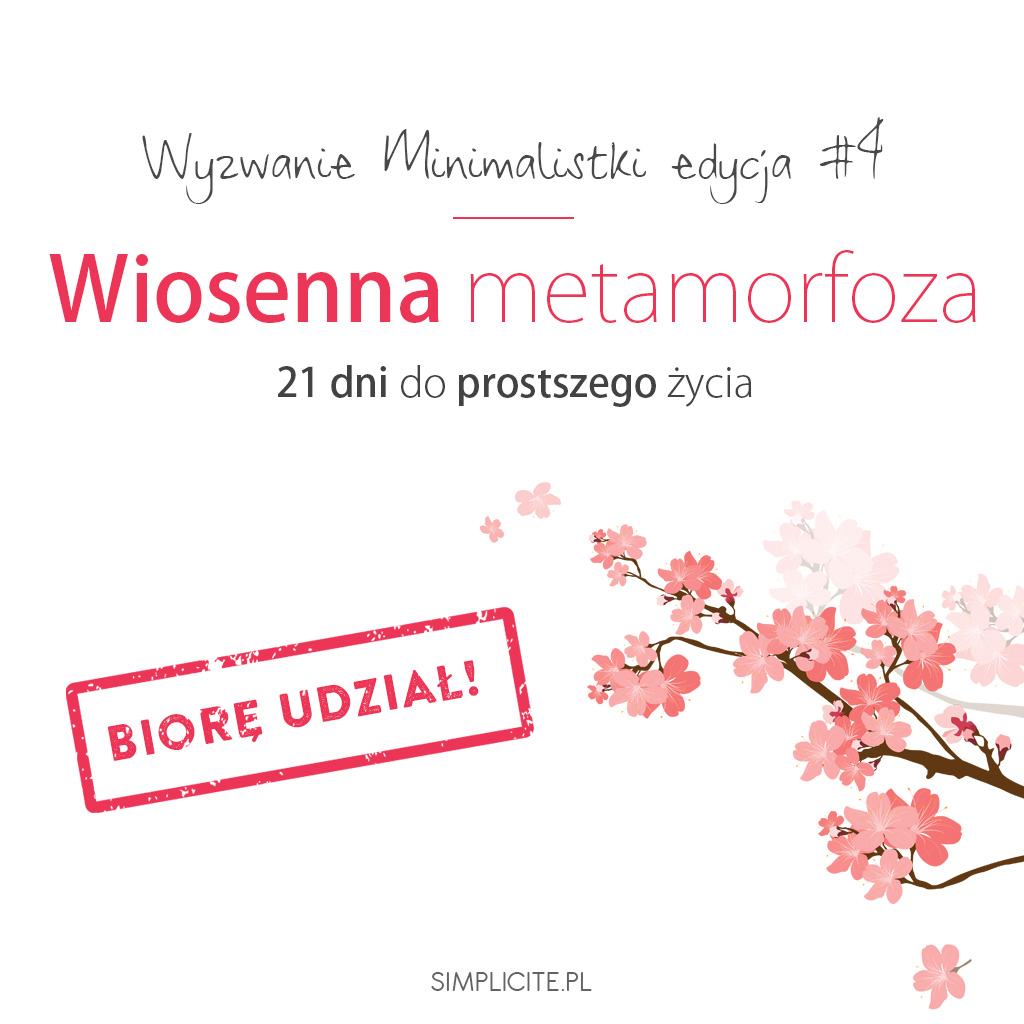 Nareszcie! Z ogromną przyjemnością zapraszam Was do udziału w Wyzwaniu Minimalistki! Uwierzycie, że to już 4 edycja? Dokładnie 3 dni zostały do astronomicznego początku wiosny, zatem i wyzwanie może się odbyć tylko pod jednym hasłem: Wiosenna Metamorfoza!