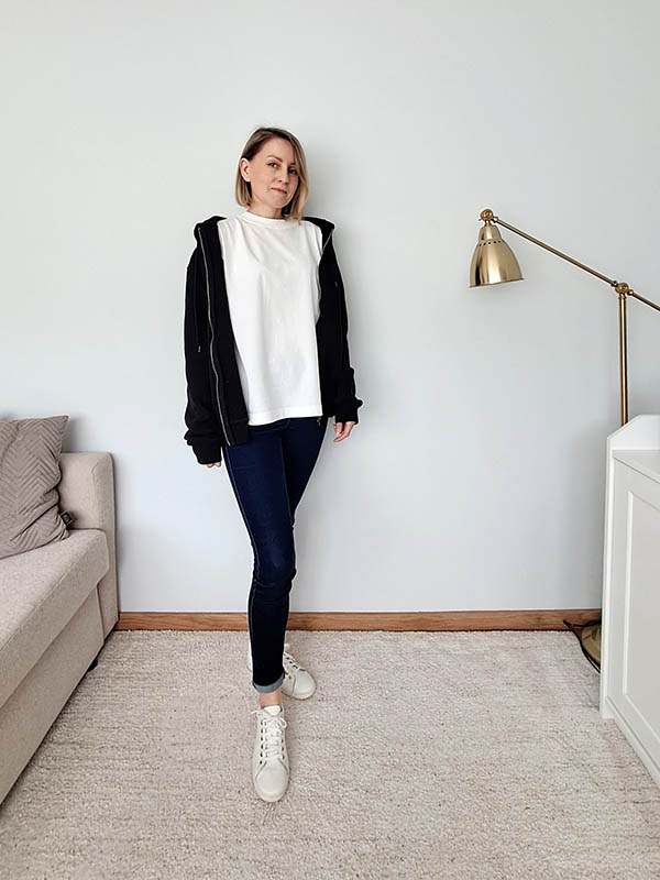 Na koniec mam ogromną prośbę o coś może nietypowego, ale stałe Czytelniczki i stali Czytelnicy doskonale wiedzą, o co chodzi. Prośba dotyczy niekomentowania mojego wyglądu jako takiego (chodzi mi tu zarówno o nieproszone uwagi, krytykę, jak i o komplementy). Chciałabym pokazać, że można rozmawiać o ubraniach, niekoniecznie komentując wygląd osoby, która te ubrania nosi. Spróbujmy zatem skupić się na samych zestawieniach, połączeniach ubrań czy uwagach/problemach/radościach płynących z budowania szafy kapsułowej jako takiej. Z góry pięknie dziękuję. :)